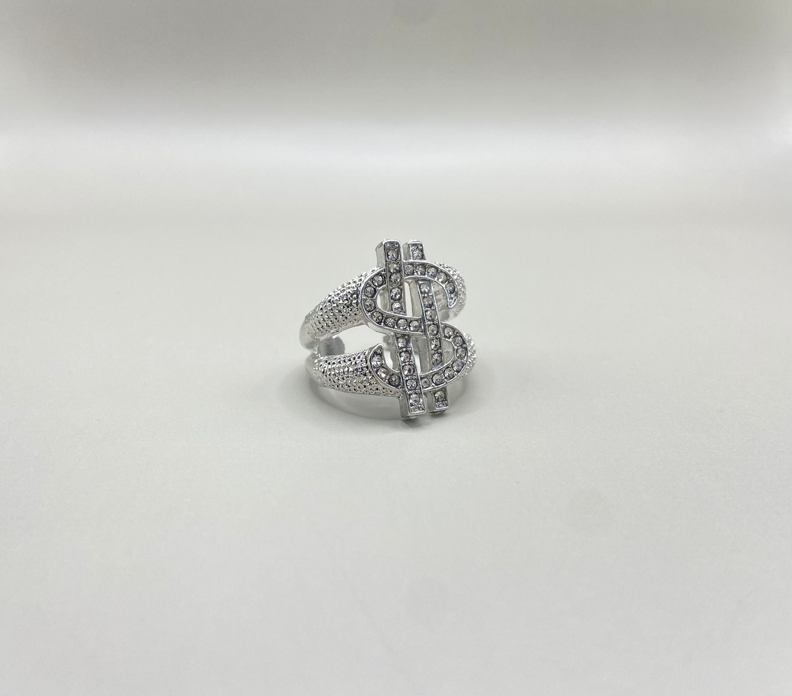 Anillo Plateado con Símbolo de Dólar y Circonias