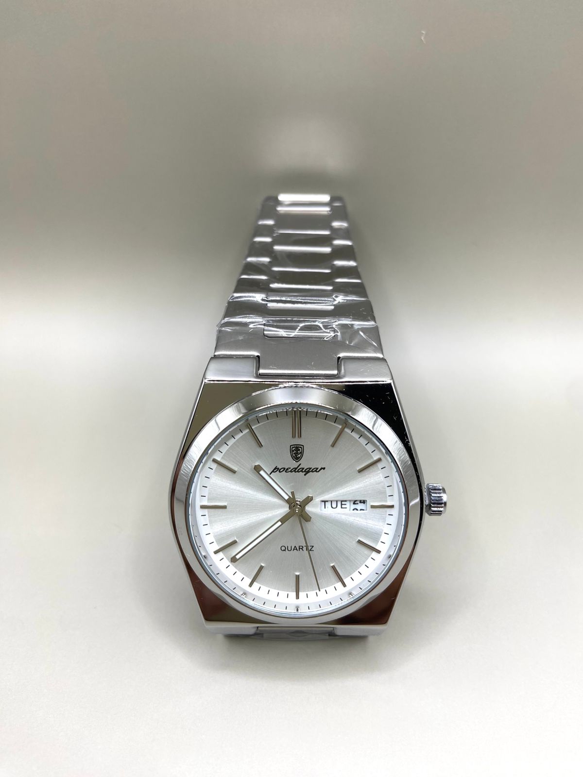 Diseño elegante y moderno con caja y correa de acero inoxidable en tono plateado. Su esfera azul profundo resalta con marcadores dorados y manecillas finas que aportan un estilo sofisticado. Incluye calendario con indicador de día y fecha, mecanismo de movimiento de cuarzo, ideal para quienes buscan precisión y estilo en un solo accesorio. Perfecto para uso diario o para complementar un look formal.